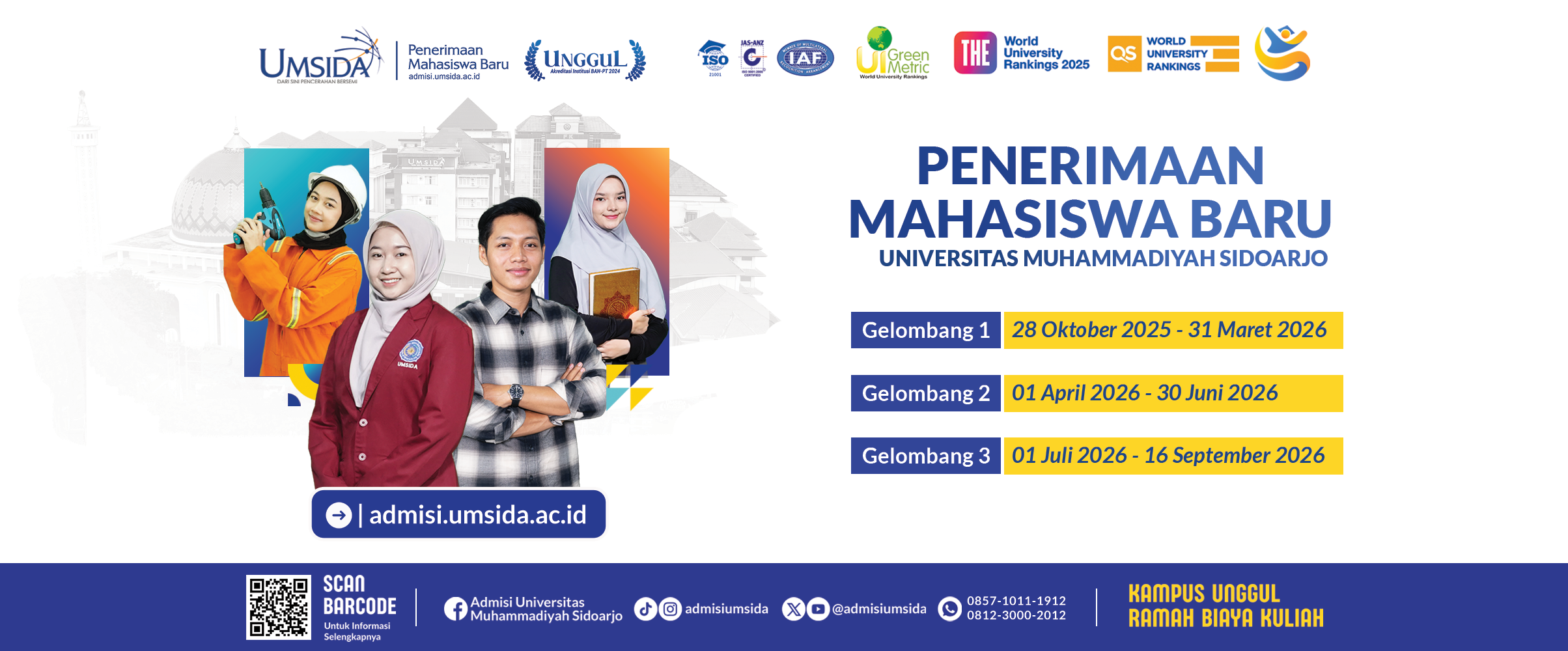 PMB Umsida 2026 Telah DibukaSebagai Perguruan Tinggi yang unggul dan inovatif, Umsida menjadi pilihan tepat yang memberikan pendidikan secara profesiona untuk mencetak generasi hebat dan menemukan minat di bidang IPTEKS berlandaskan nilai islam