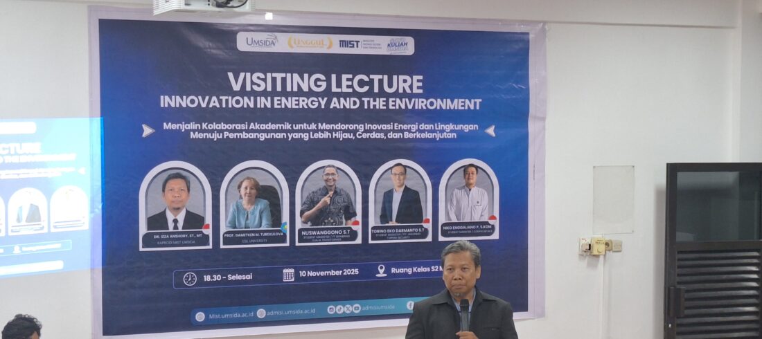 Fst.umsida.ac.id – Program Magister Inovasi Sistem dan Teknologi (MIST) Universitas Muhammadiyah Sidoarjo (Umsida) menggelar Visiting Lecture bertema “Innovation in Energy and the Environment” pada Senin (10/11/2025). Kegiatan ini menghadirkan Prof Dametken M Turekulova, Vice-Rector for Scientific Affairs and Internationalization dari Esil University, Kazakhstan, yang membahas...Read More