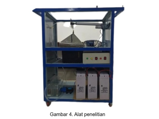 Dalam penelitian ini, panel photovoltaic (PV) menghasilkan energi listrik yang kemudian disimpan dalam baterai untuk menyalakan kompor pemanas serta perangkat elektronik lainnya. Energi tersebut digunakan untuk memanaskan air laut hingga mengalami penguapan dan membentuk kristal garam.